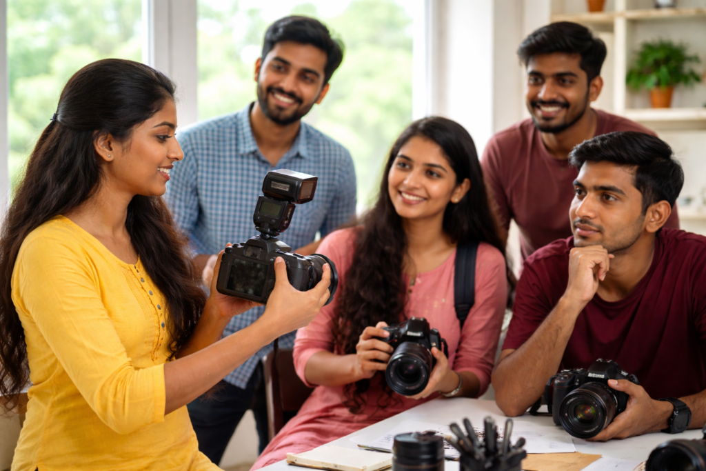 Our videography course in Perinthalmanna is designed for students who want to learn professional camera handling, lighting techniques, composition, and photo editing skills. With the guidance of experienced trainers, students will get practical training through real shoots and live projects. This course helps you build the confidence to work in events, studios, media, and social media content creation. Join our academy to turn your creativity into a successful career in photography.