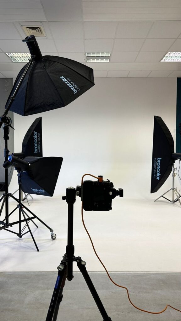 Students get real shooting experience with professional cameras and studio setup.