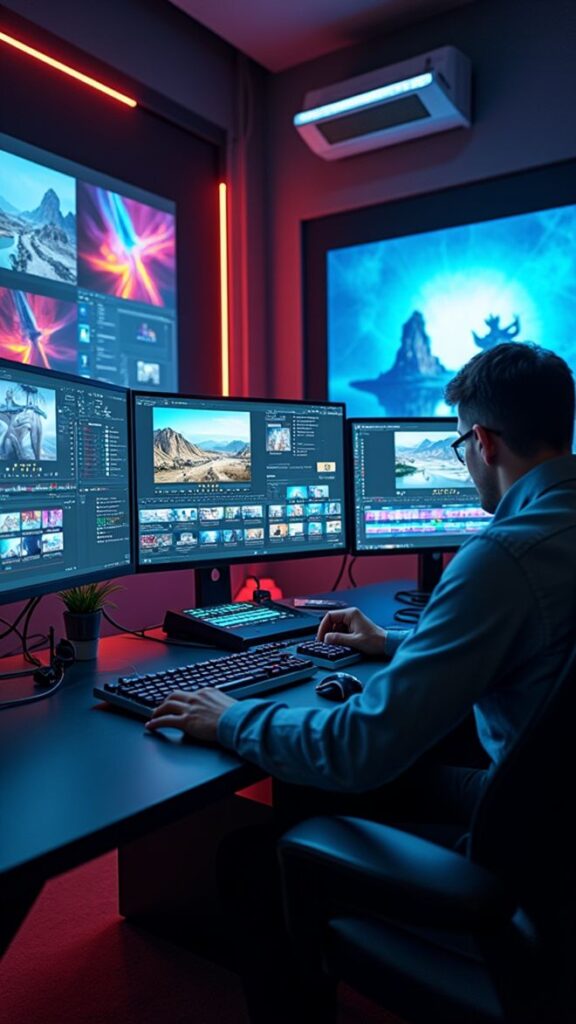 Understand video editing, color correction, transitions, and effects using modern software like Premiere Pro and After Effects.